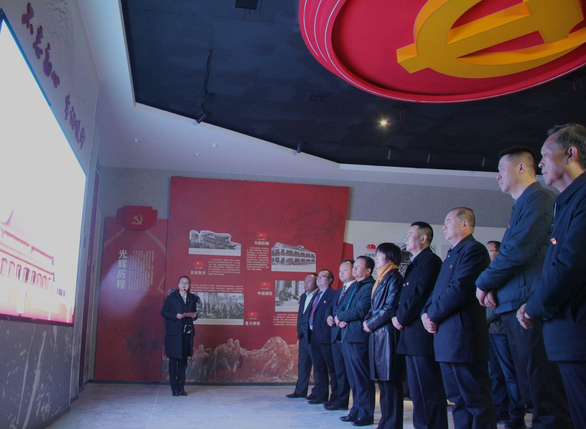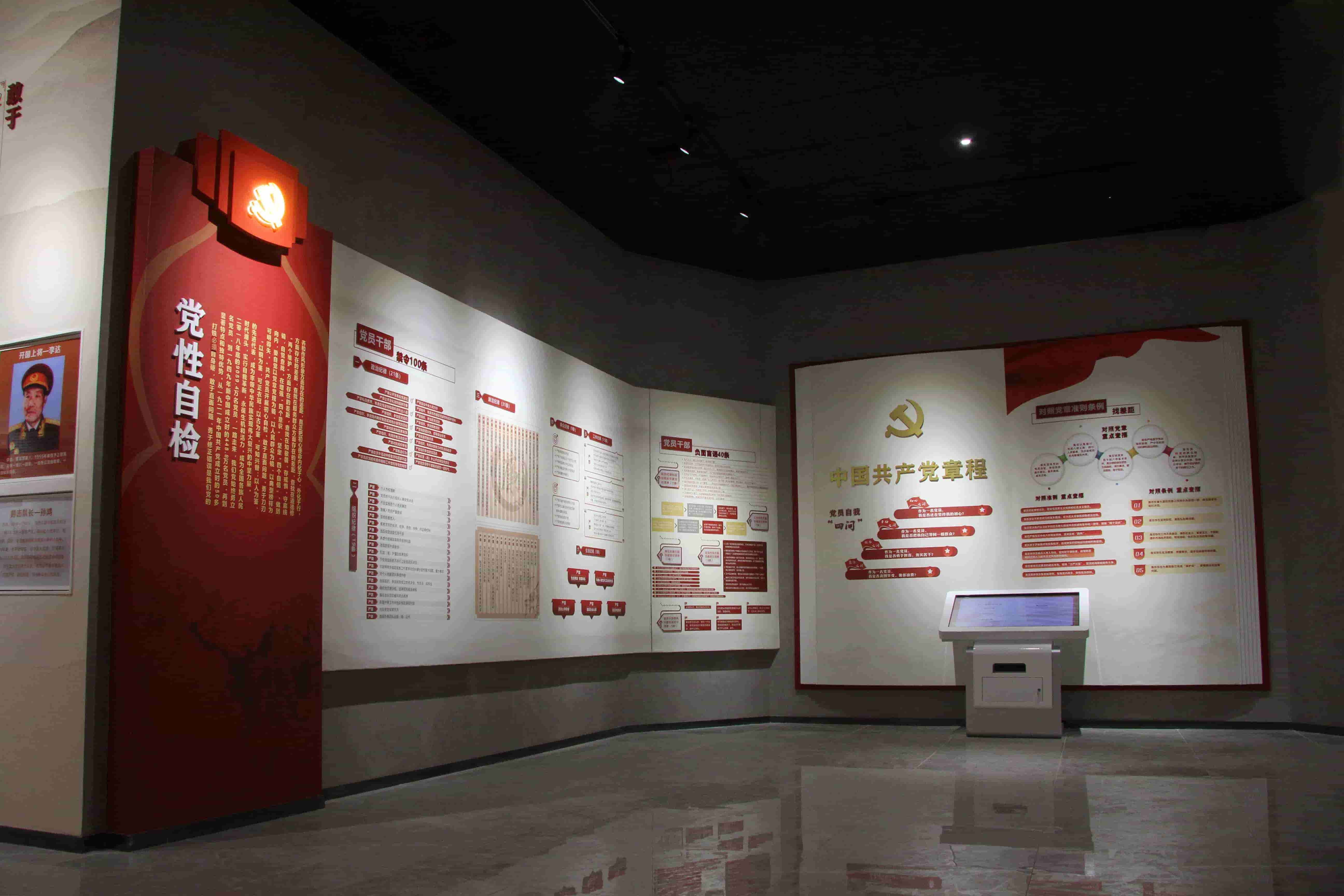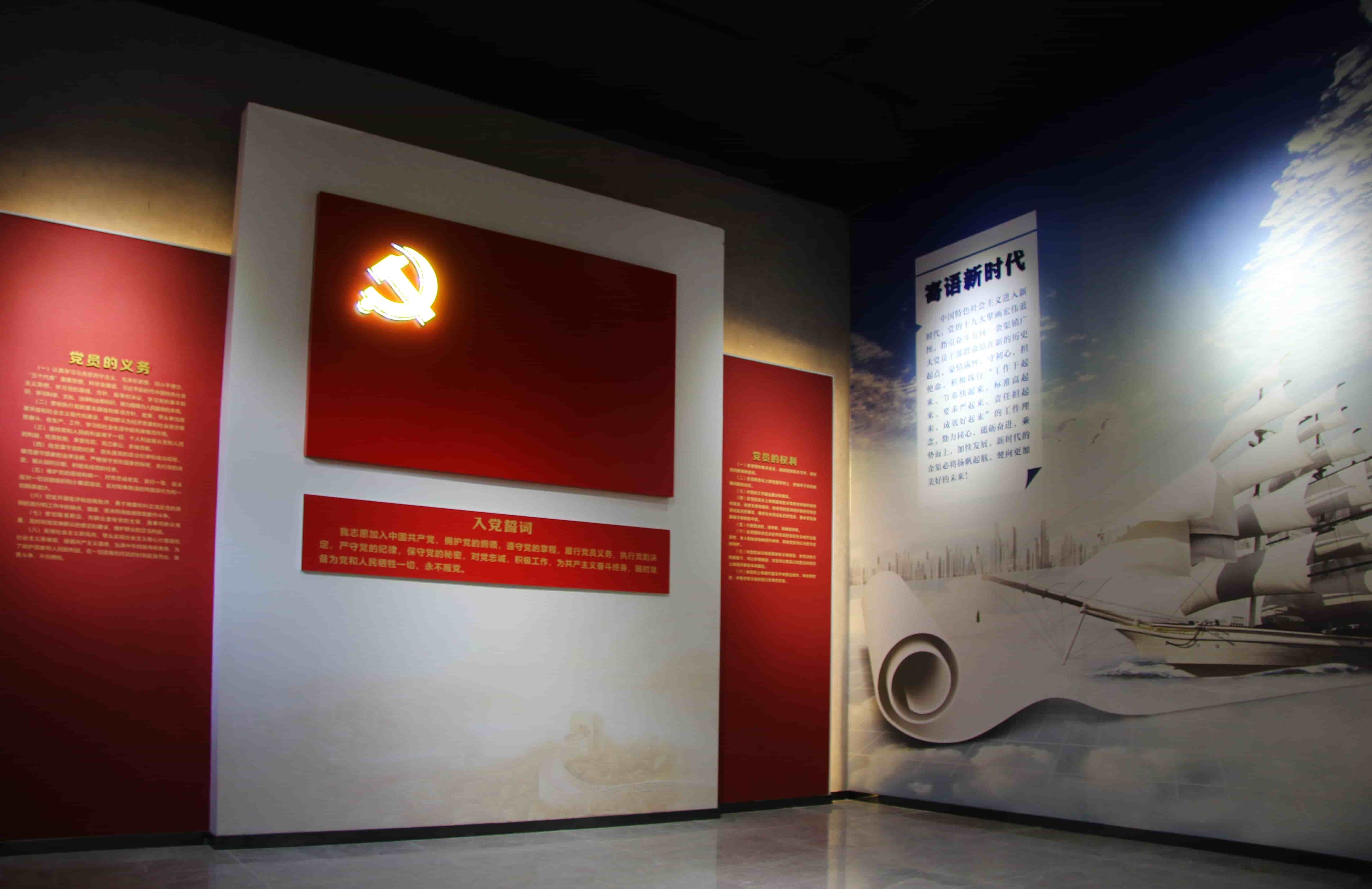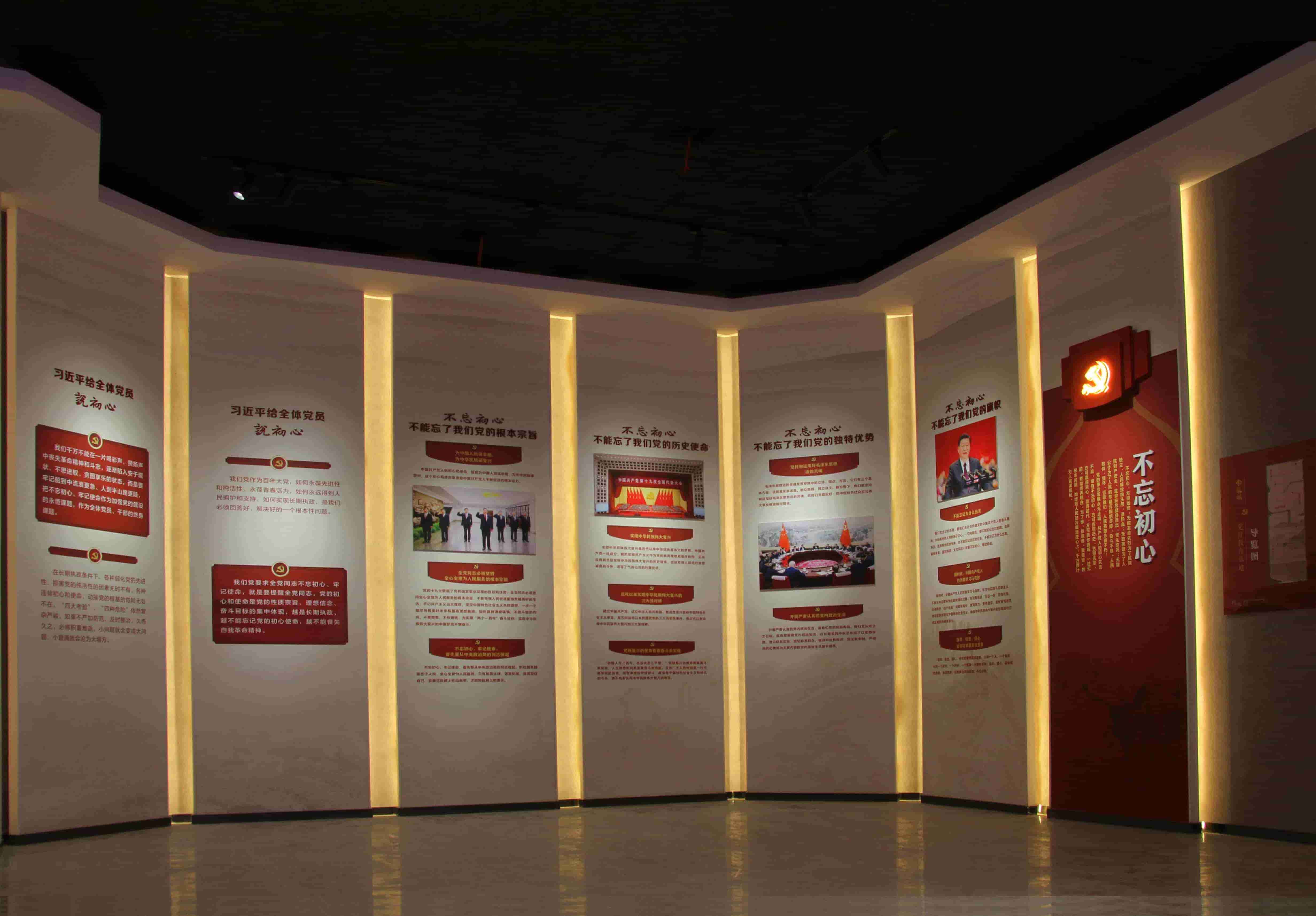 以中共重大历史事件为主题,递进式墙面造型,通过图文展示中国共产党发展的艰难岁月和光辉历程,重现我党波澜壮阔的发展壮大史。