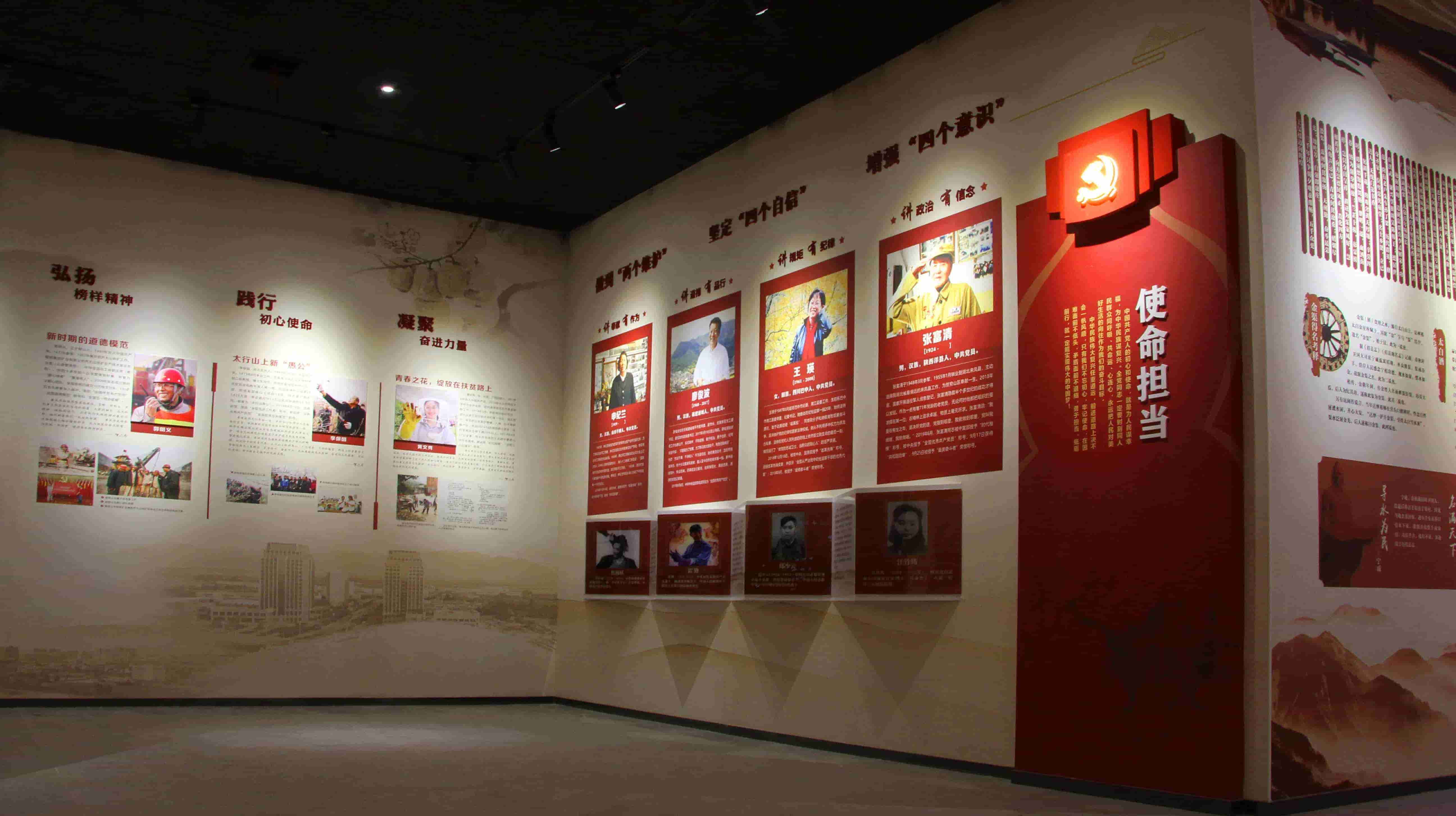 该展区对照四讲四有标准,展示焦裕禄、雷锋、邱少云等历史先进人物以及张富清、王瑛、廖俊波、申纪兰等时代先锋人物和事迹;教育广大党员干部学习先辈的优良品质,同时,以身边人讲身边事,展示了金渠镇不同时期、不同领域优秀共产党人物。