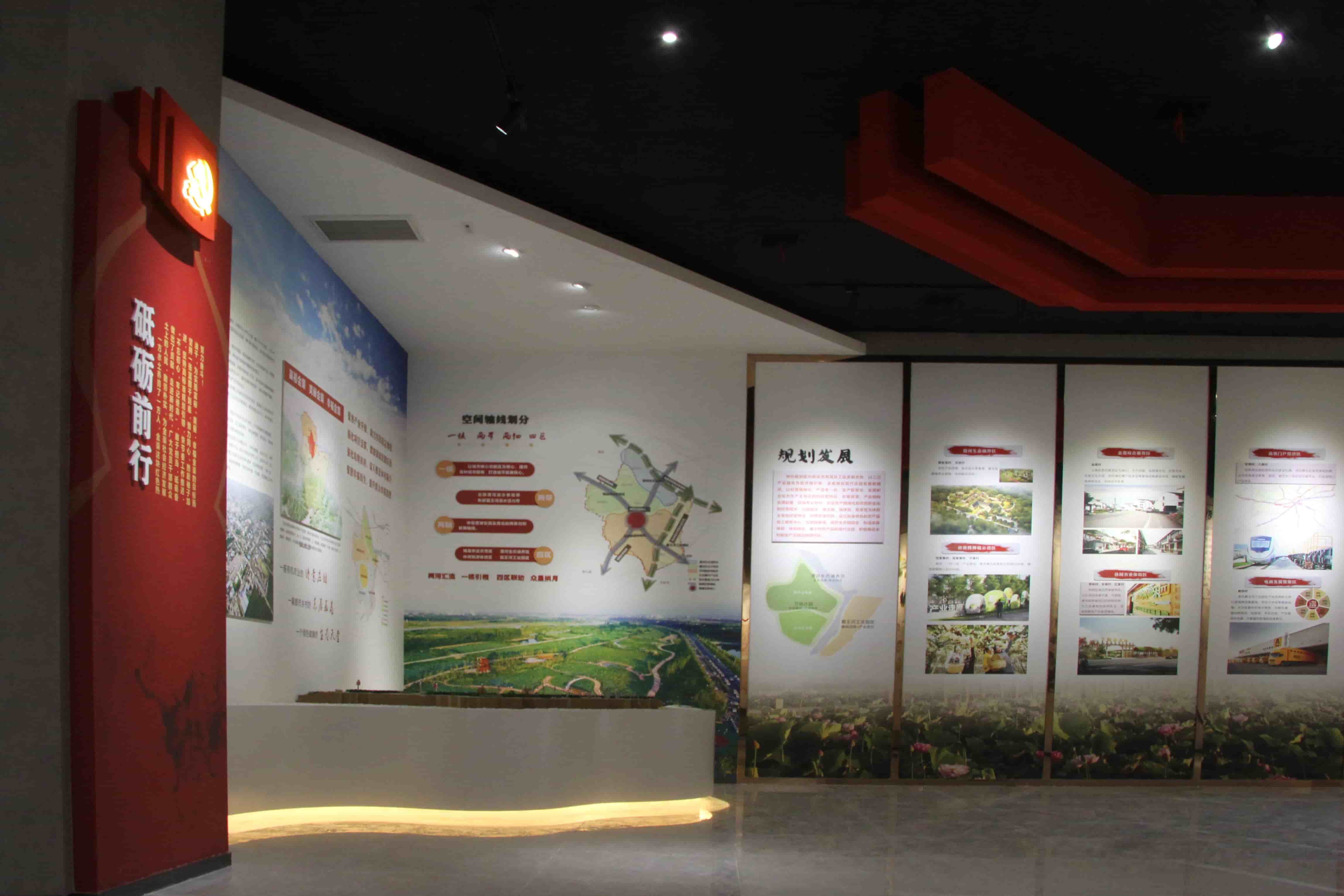 墙面展板展示了金渠的发展现状及未来各产业领域的规划目标,利用沙盘结合墙体全面系统地展示了金渠未来新时代地区规划、产业发展、民生改善等方面的具体落实计划和展示,在规划中理清思路、展望未来,寄语金渠新时代,共建美丽、幸福新金渠。