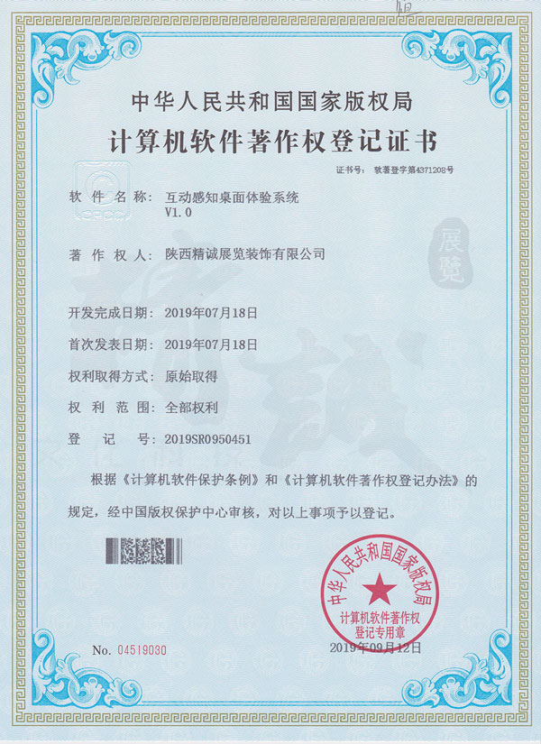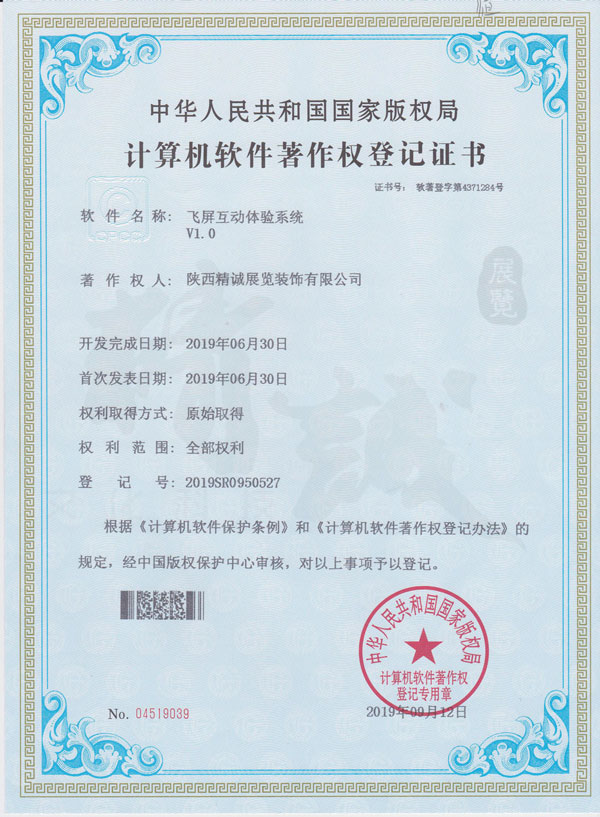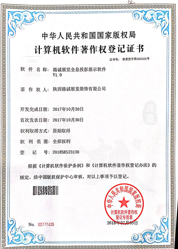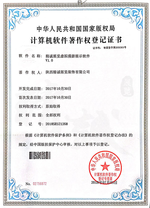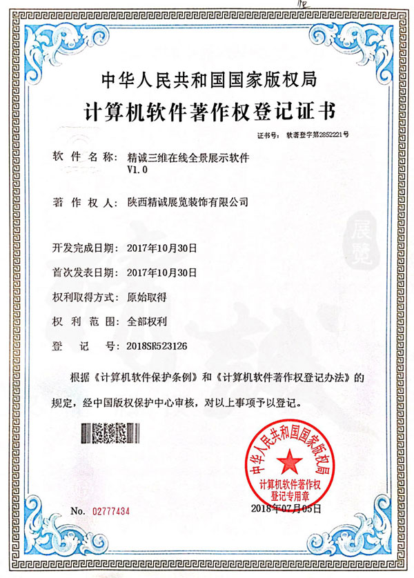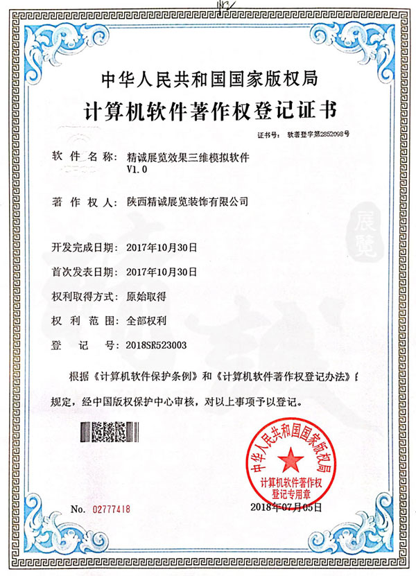 - 陕西草莓视频在线下载观看展览装饰有限公司计算机软件著作权登记证书 -